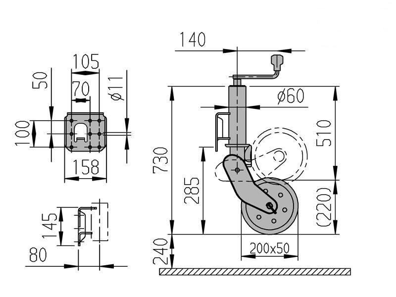 • Pyörä: kovakumipyörä 200x50mm