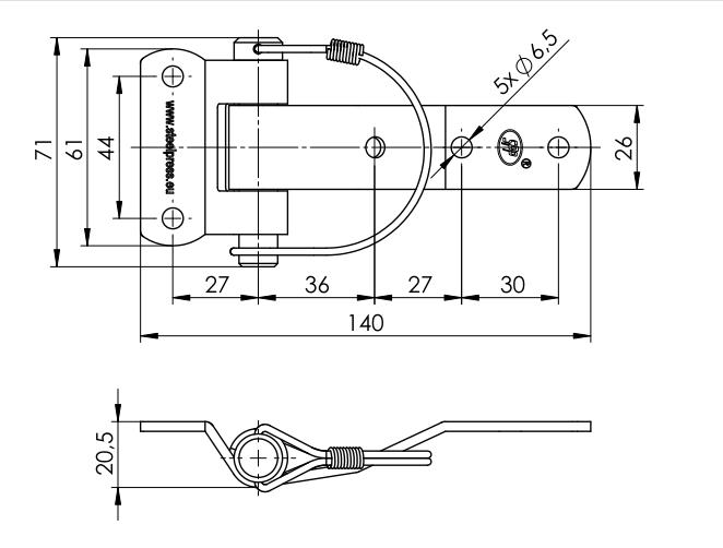 Perävaunun/Trailerin yms. sinkitty sarana reijillä ja iroitettavalla saranatapilla.