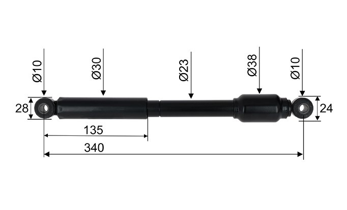 - A = Koko pituus 370 mm / Kiinnitys pituus 340 mm