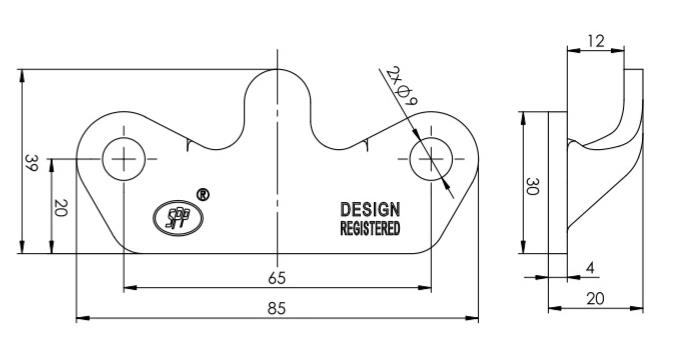• Kiinnitys Reijät 2 x 9 mm / 65 mm etäisyys toisistaan